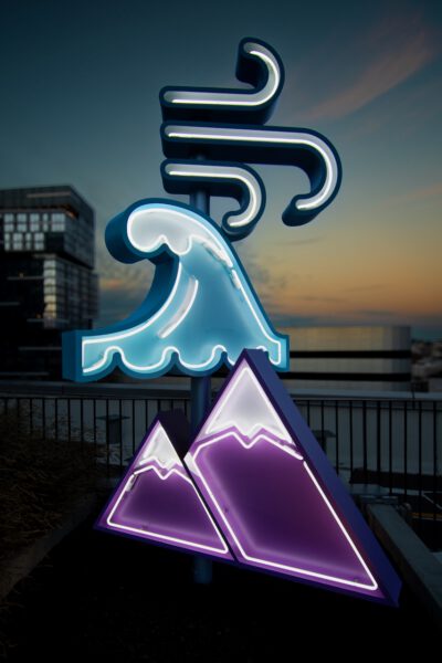In this series of neon sculptures, we explore iconic forms of nature through playful, almost surreal arrangements, using symbols familiar to anyone. Simple icons—trees, clouds, raindrops, and suns—are stacked in unexpected, whimsical combinations that defy traditional logic: a tree balances on a cloud, a wave breaks on top of a mountain. These sculptures invite viewers to see these beloved natural elements in a new, strange light, capturing the playful unpredictability of life in the Pacific Northwest.